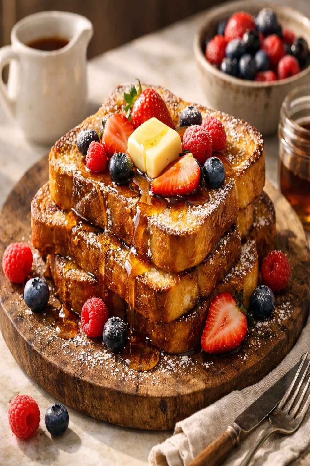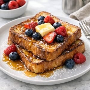 • Honey, Greek yogurt, and granola – For a lighter approach, add a dollop of Greek yogurt (which adds protein), drizzle with honey, and scatter granola for crunch. This transforms French toast into a more protein-forward breakfast.