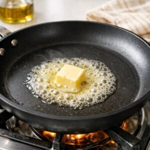 Add one tablespoon of unsalted butter to the skillet and let it melt completely, coating the cooking surface evenly. You’ll know it’s ready when it’s foaming gently and smells nutty and inviting. This should take about 2-3 minutes.